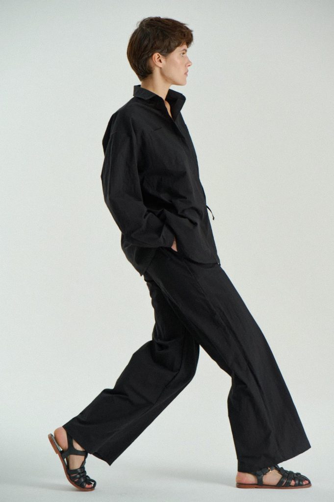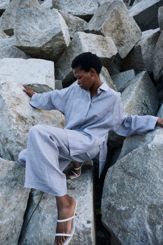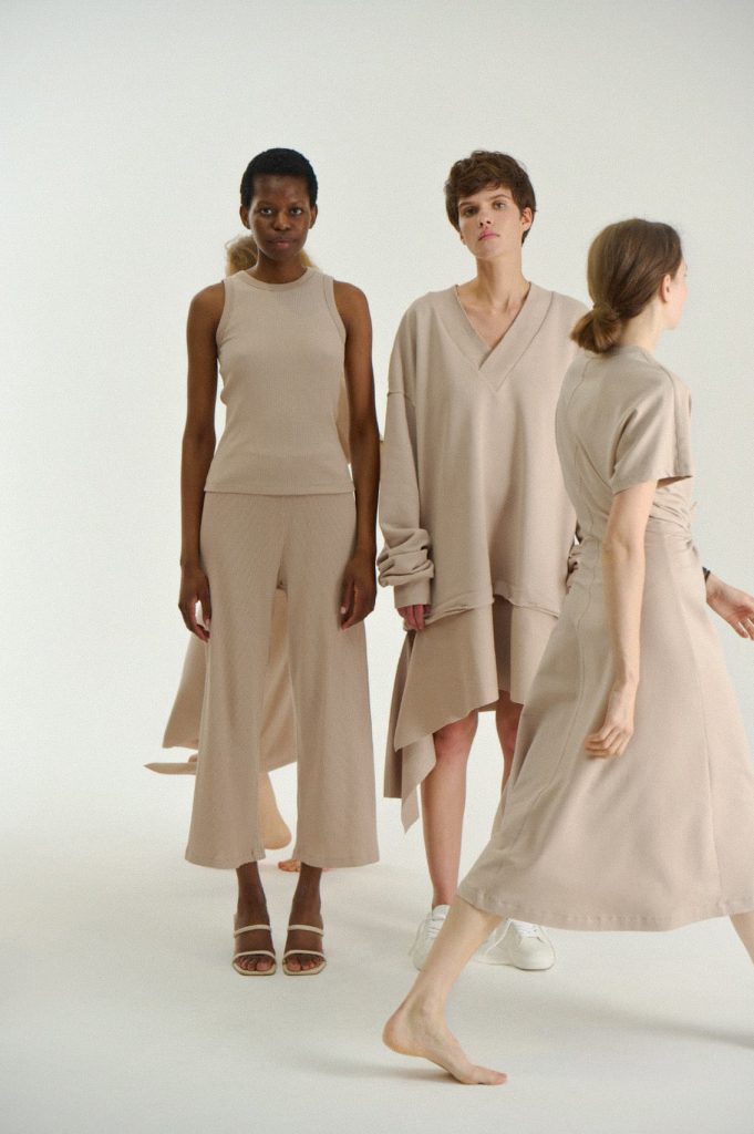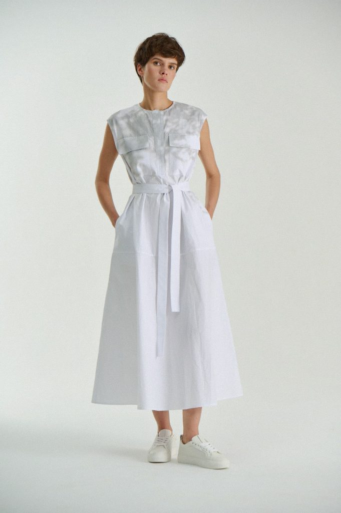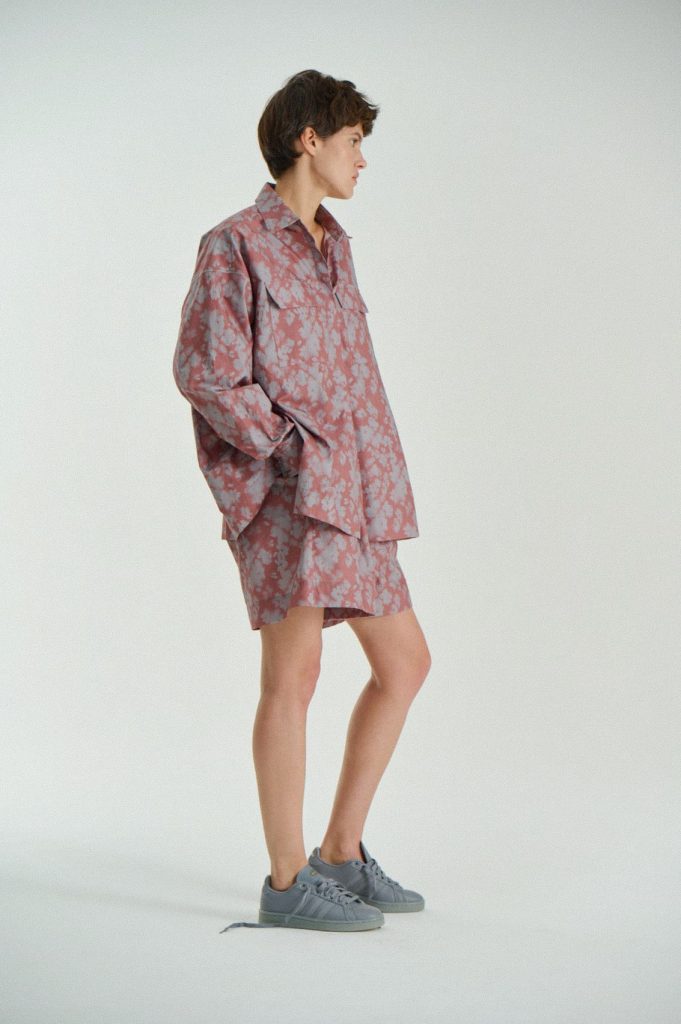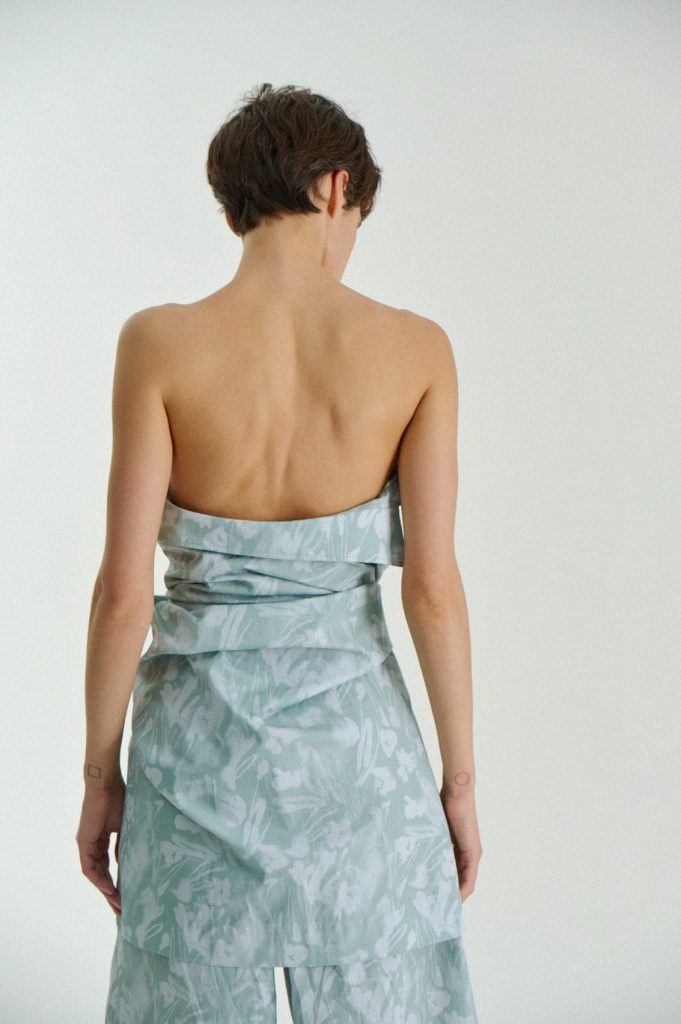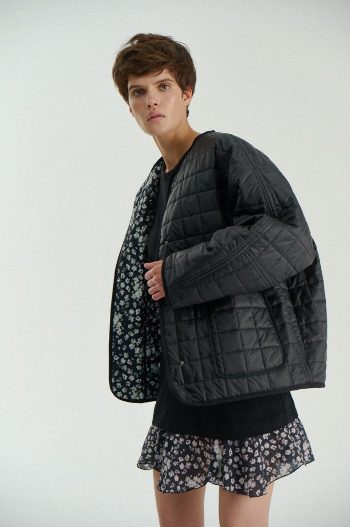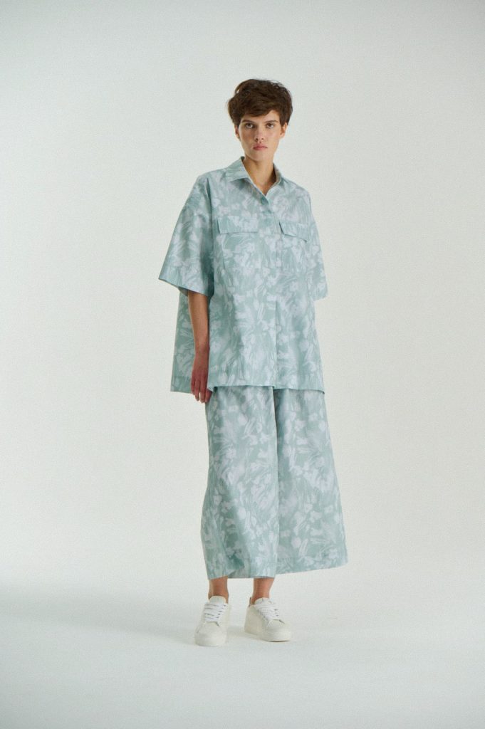 Для первой летней коллекции мы вдохновлялись мягкой загородной природой — полевыми цветами, тенями от деревьев и выбеленными сочетаниями цветов. Размытые полевые цветы, нарисованные в набросочной манере легли в основу ink дропа, где рисунок напечатан на струящейся вискозе, и хлопке, ставшим внутренней стороной стеганой куртки. Stone дроп — в него вошли элегантные вещи из конопли и шуршащего хлопка в холодном сером оттенке. Shadow дроп — платье и футболки с принтом в виде упавших от лиcтьев теней и отбликов солнца.