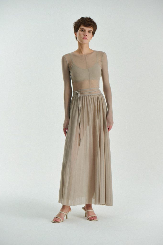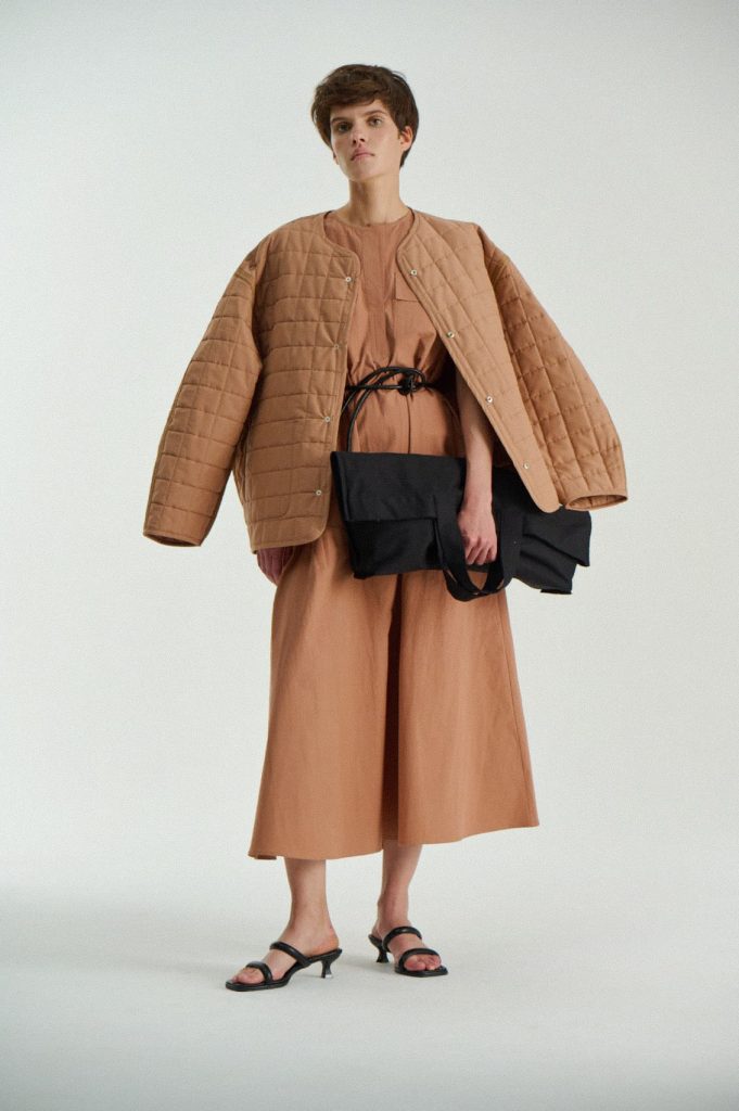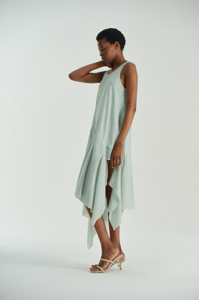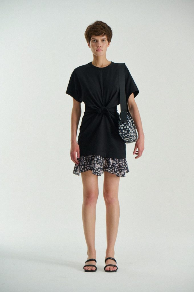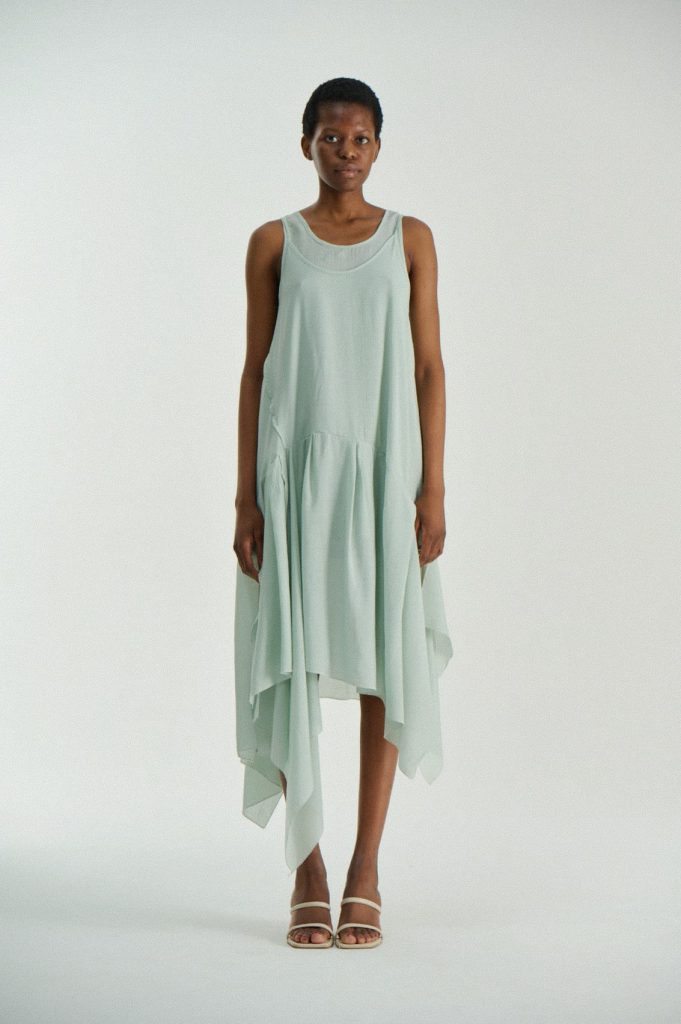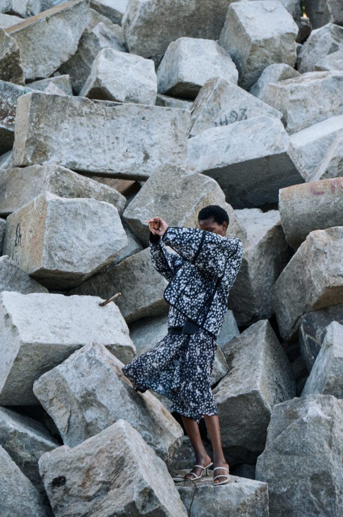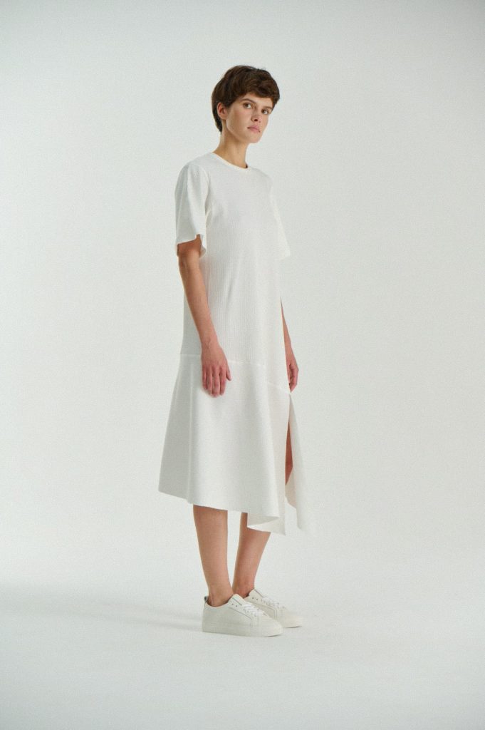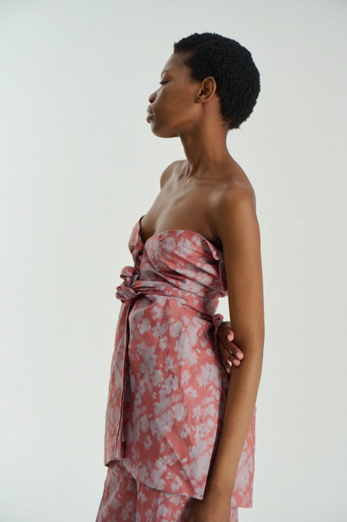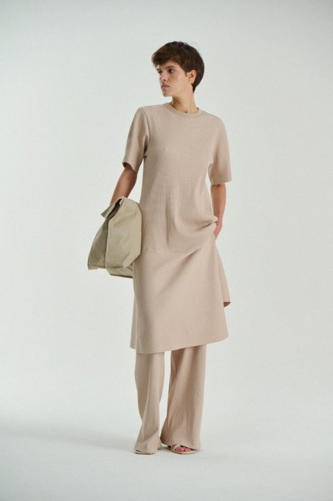 Для первой летней коллекции мы вдохновлялись мягкой загородной природой — полевыми цветами, тенями от деревьев и выбеленными сочетаниями цветов. Размытые полевые цветы, нарисованные в набросочной манере легли в основу ink дропа, где рисунок напечатан на струящейся вискозе, и хлопке, ставшим внутренней стороной стеганой куртки. Stone дроп — в него вошли элегантные вещи из конопли и шуршащего хлопка в холодном сером оттенке. Shadow дроп — платье и футболки с принтом в виде упавших от лиcтьев теней и отбликов солнца.